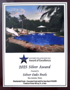 Recognized for excellence with the 2025 Silver Award at the Southwest Pool and Spa Show, Silver Oaks Pools is committed to raising the bar in pool construction and outdoor living spaces. Whether you’re envisioning a serene residential oasis or a dynamic commercial aquatic center, our comprehensive services and attention to detail by our own Landscape Architect ensure your project exceeds your expectations.
